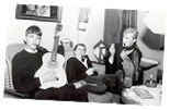 1964 Carrions consists of four guys (Lennart Alftrén, Mats Wickén, Krister Berglund and Lars Carlsson) and get to play (first ever!) on a staff party at KMW in the city of Karlstad. The band became very popular and got to win several rock band competitions this year (e.g. in Deje (outside Karlstad), the first price was a casting rod!)